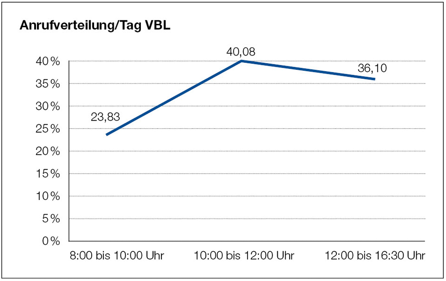 Gerne können Sie sich jederzeit an uns wenden. Um Ihnen jedoch eine bessere Erreichbarkeit zu ermöglichen, empfehlen wir Ihnen Zeiten, die außerhalb der anrufstärksten Zeiträume liegen.