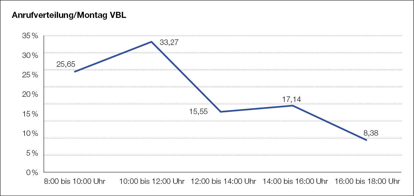 Gerne können Sie sich jederzeit an uns wenden. Um Ihnen jedoch eine bessere Erreichbarkeit zu ermöglichen, empfehlen wir Ihnen Zeiten, die außerhalb der anrufstärksten Zeiträume liegen.