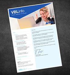 Mit unserer VBLinfo vom März 2024 erhalten die beteiligten Arbeitgeber aktuelle Informationen zur Zusatzversorgung.