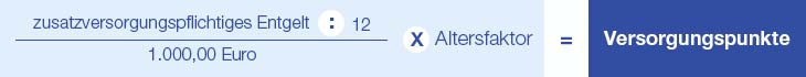 | Versorgungspunkte aus der Startgutschrift + Versorgungspunkte aus zusatzversorgungspflichtigem Entgelt + ggf. Versorgungspunkte aus sozialen Komponenten + ggf. Bonuspunkte |