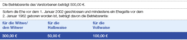 Die Betriebsrente des Verstorbenen beträgt 500€.