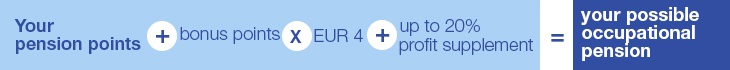 Your pension points + bonus points x EUR 4 + up to 20% profit mark-up = your possible occupational pension